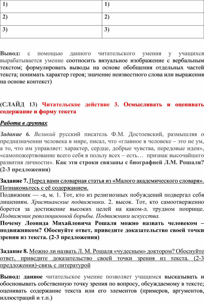 Читательское действие. 3. Осмыслять и оценивать содержание и форму текста