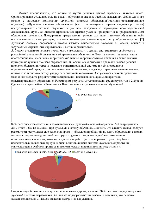 дать ответ и 6% не слышали про дуальную систему обучения. Для того, что сделать вывод, следует