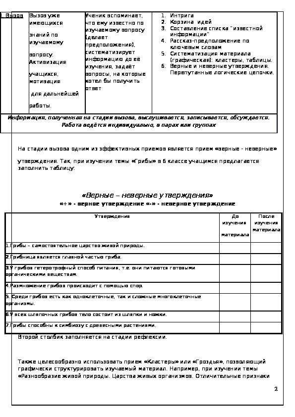 утверждения. Так, при изучении темы «Грибы» в 6 классе учащимся предлагается