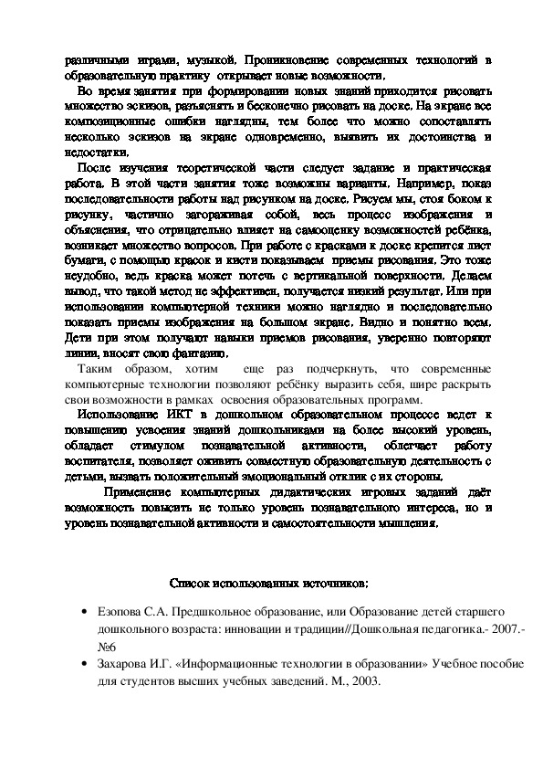 Езопова С.А. Предшкольное образование, или Образование детей старшего