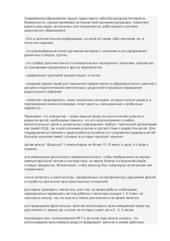 Анализируя опыт использования ИКТ в детском саду можно сказать, что