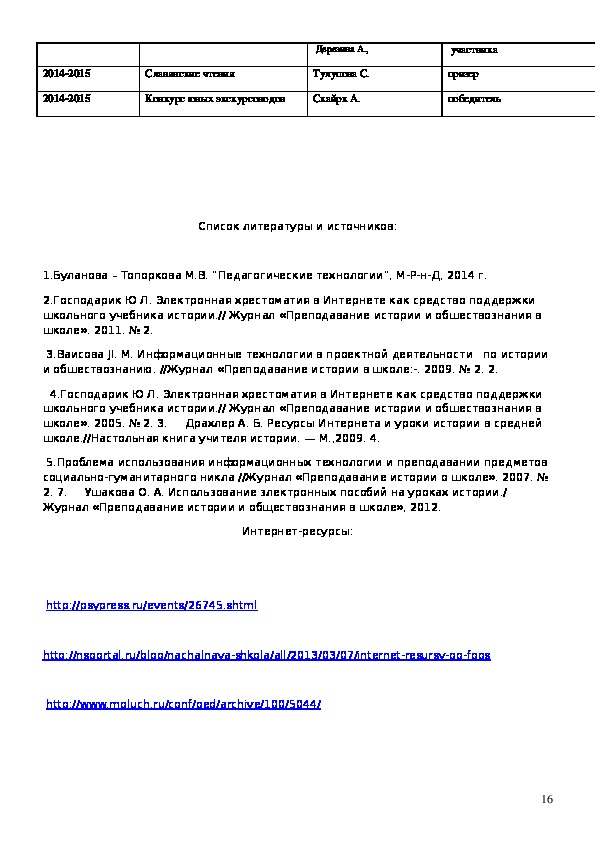 3.Ваисова JI. М. Информационные технологии в проектной деятельности по истории