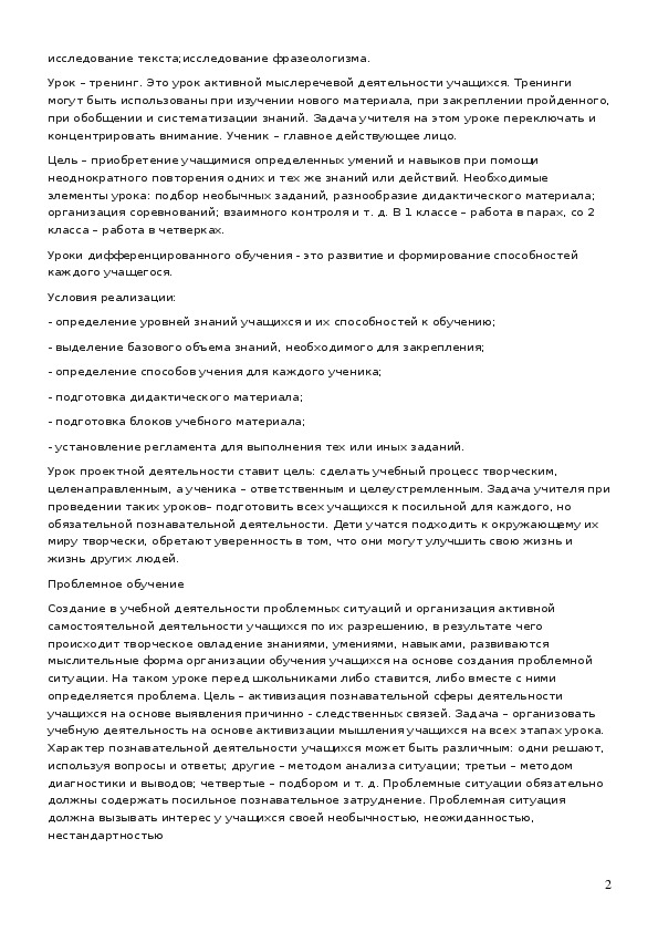 Урок – тренинг. Это урок активной мыслеречевой деятельности учащихся. Тренинги