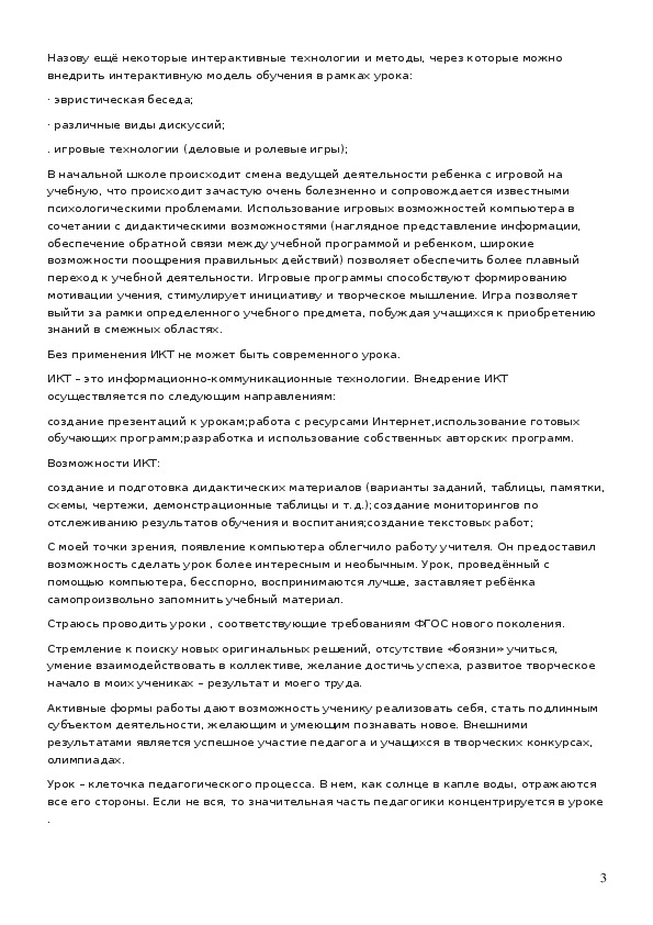 Однако внедрение современных образовательных и информационных технологий не означает, что они полностью заменят традиционную методику преподавания, а будут являться её составной частью. Ведь педагогическая технология – это совокупность методов, методических приемов, форм организации учебной деятельности, основывающихся на теории обучения и обеспечивающих планируемые результаты.