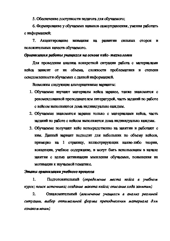 преподавателя, это анализ конкретной ситуации, который заставляет поднять