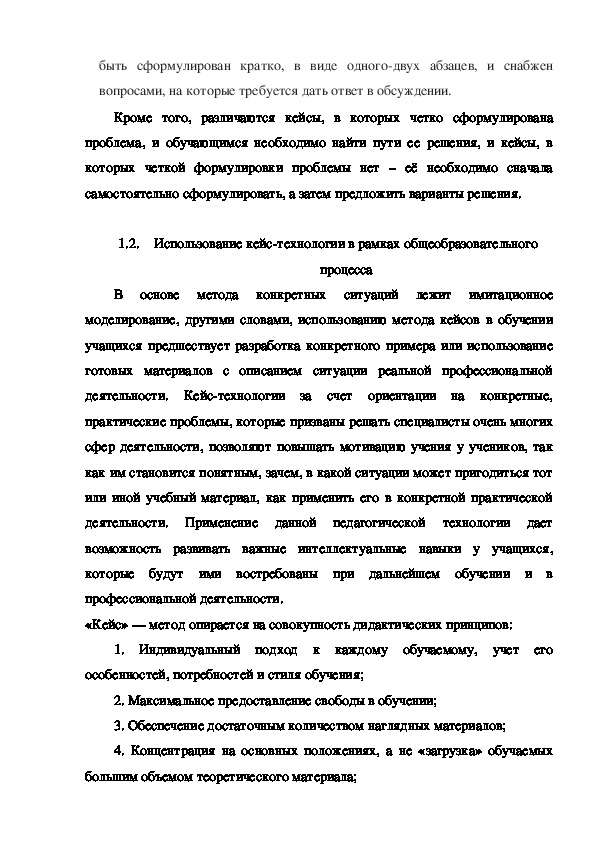 1.2. Использование кейстехнологии в рамках общеобразовательного