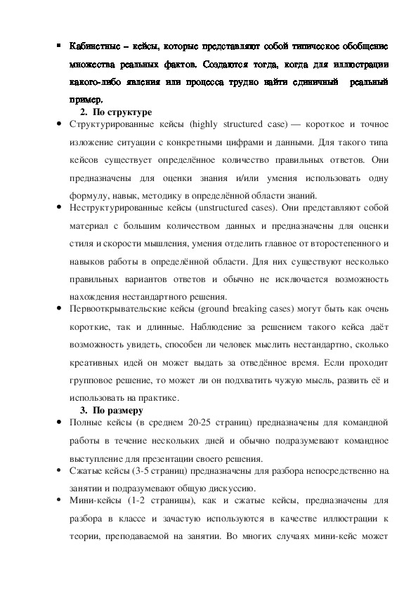 объектами, явлениями, людьми. Кабинетные – кейсы, которые представляют собой типическое обобщение