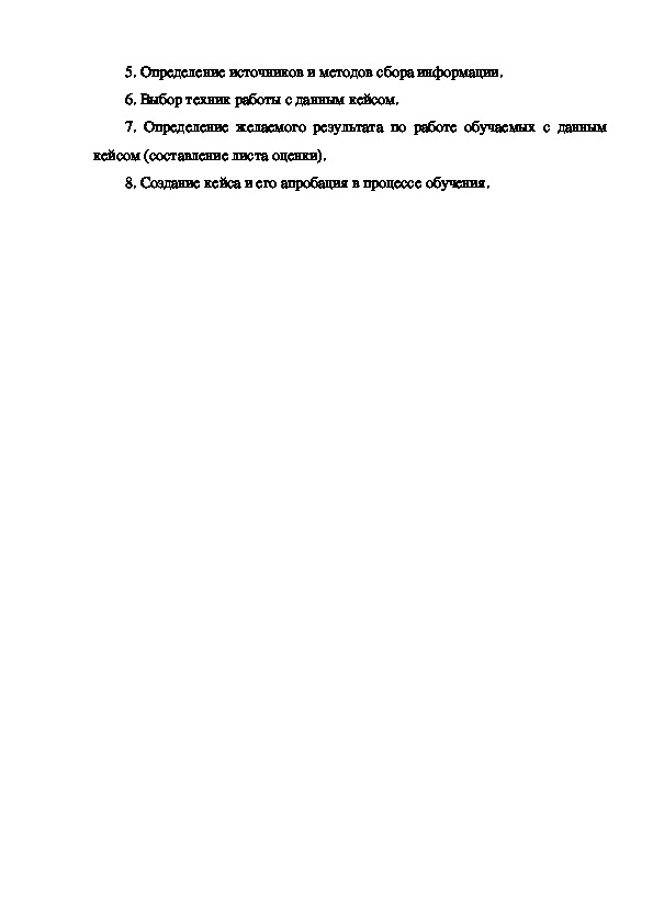 курсе; поиск источника; создание макета кейса; описание хода занятия)