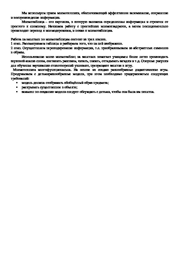 Работа с мнемотаблицами не требует специального обучения и высокого профессионализма