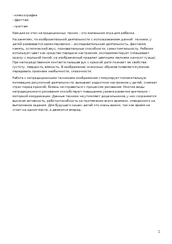 моторной координации. Данные техники не утомляют дошкольников, у них сохраняется