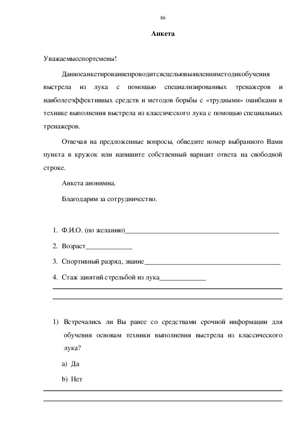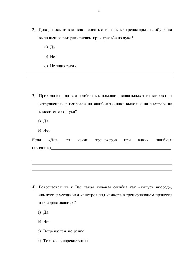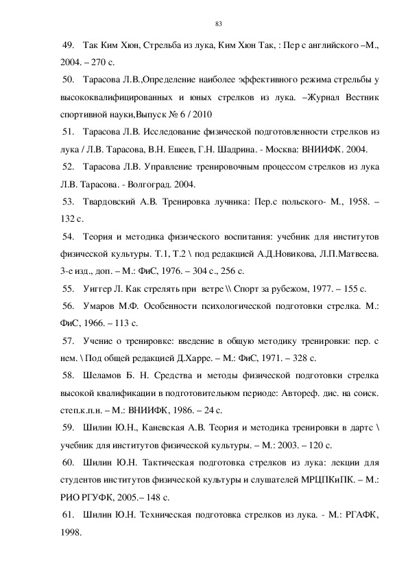 начальном периоде обучения и сформировавшемся у лучников устаревшем