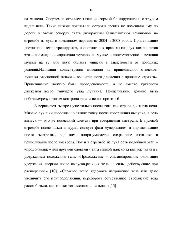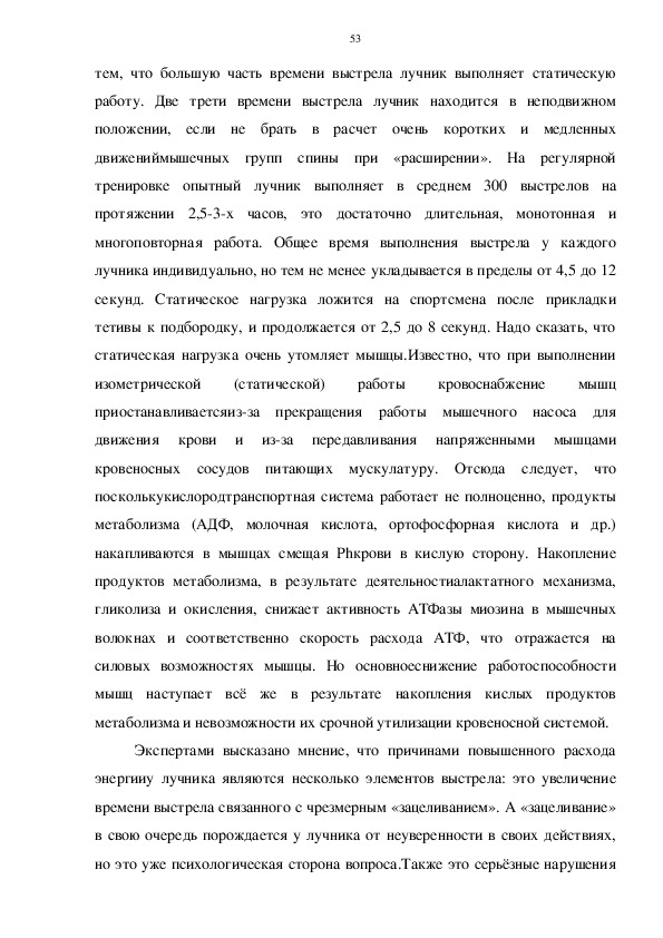 Физическая нагрузка спортсмена стрелка из лука обусловлена