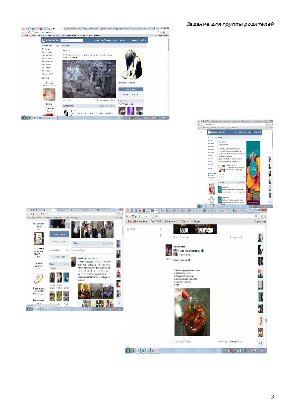 скриншоты страниц социальных сетей, сделав выводы….Задание для группы педагоги: Сколько времени ребенок проводит в