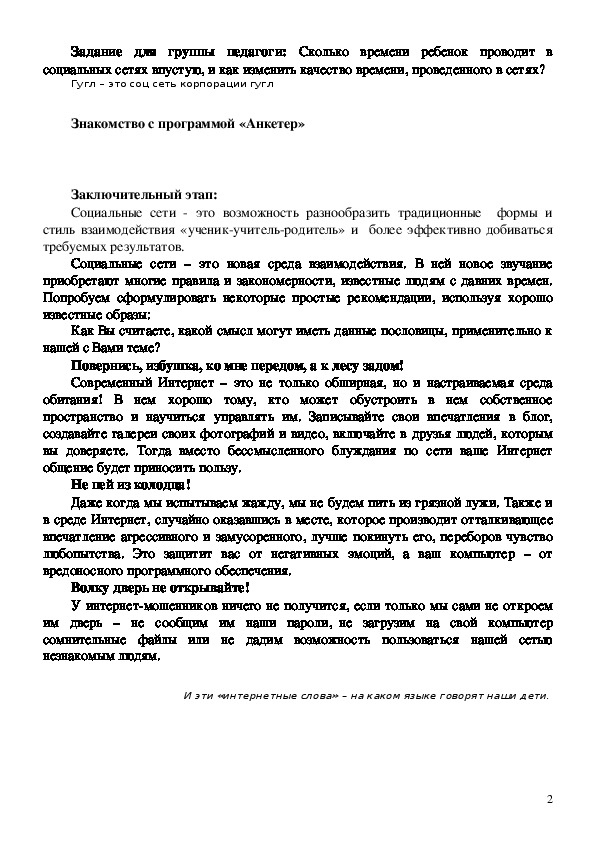1. Познакомиться с возможностями социальных сетей и их использования в профессиональной деятельности учителя, классного руководителя.