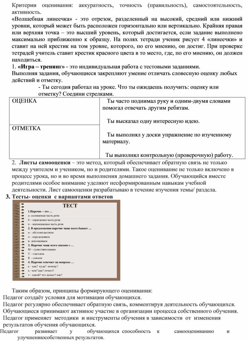 Таким образом, принципы формирующего оценивания: Педагог создаёт условия для мотивации обучающихся.