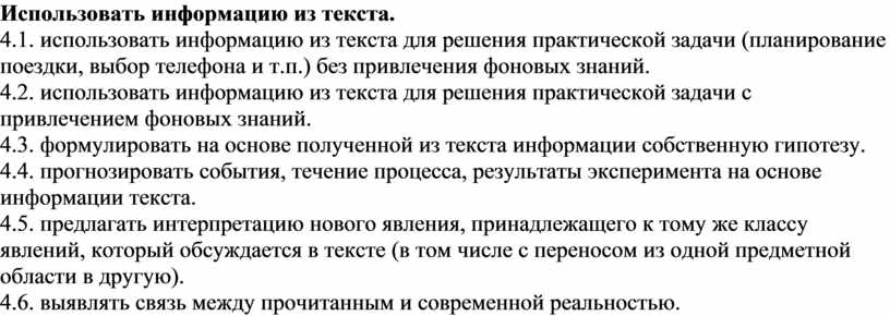 4.2. использовать информацию из текста для решения практической задачи с привлечением фоновых знаний.