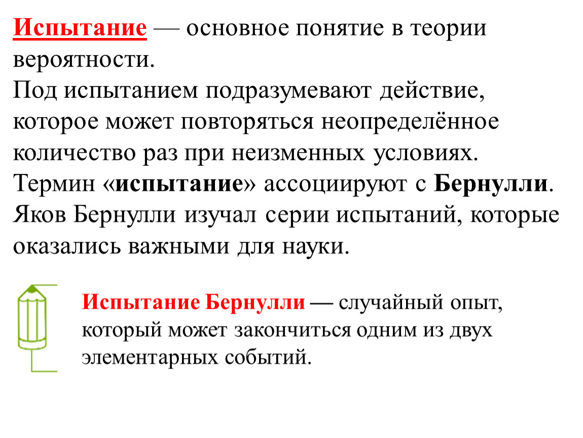 Термин «испытание» ассоциируют с Бернулли. Яков Бернулли изучал серии испытаний, которые оказались важными для науки.