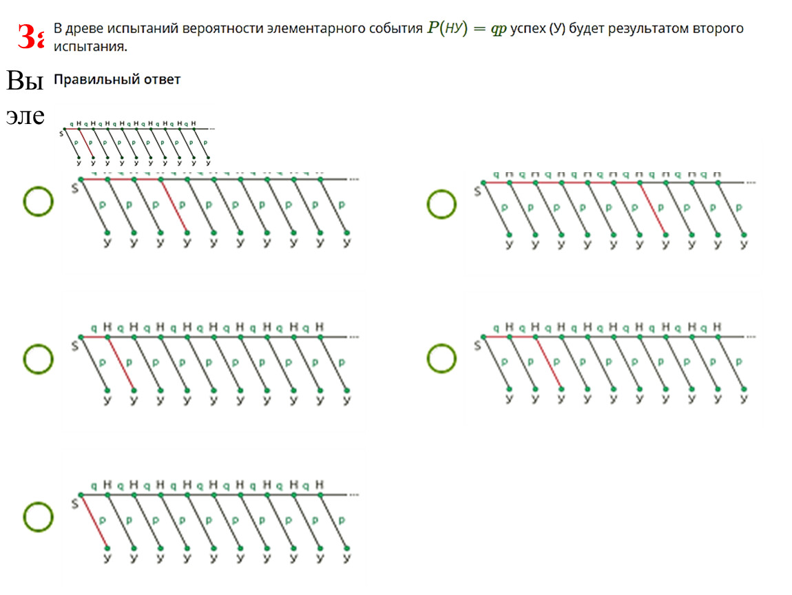 Найди соответствующее древо испытаний вероятности элементарного события P(ННY)=q2p.