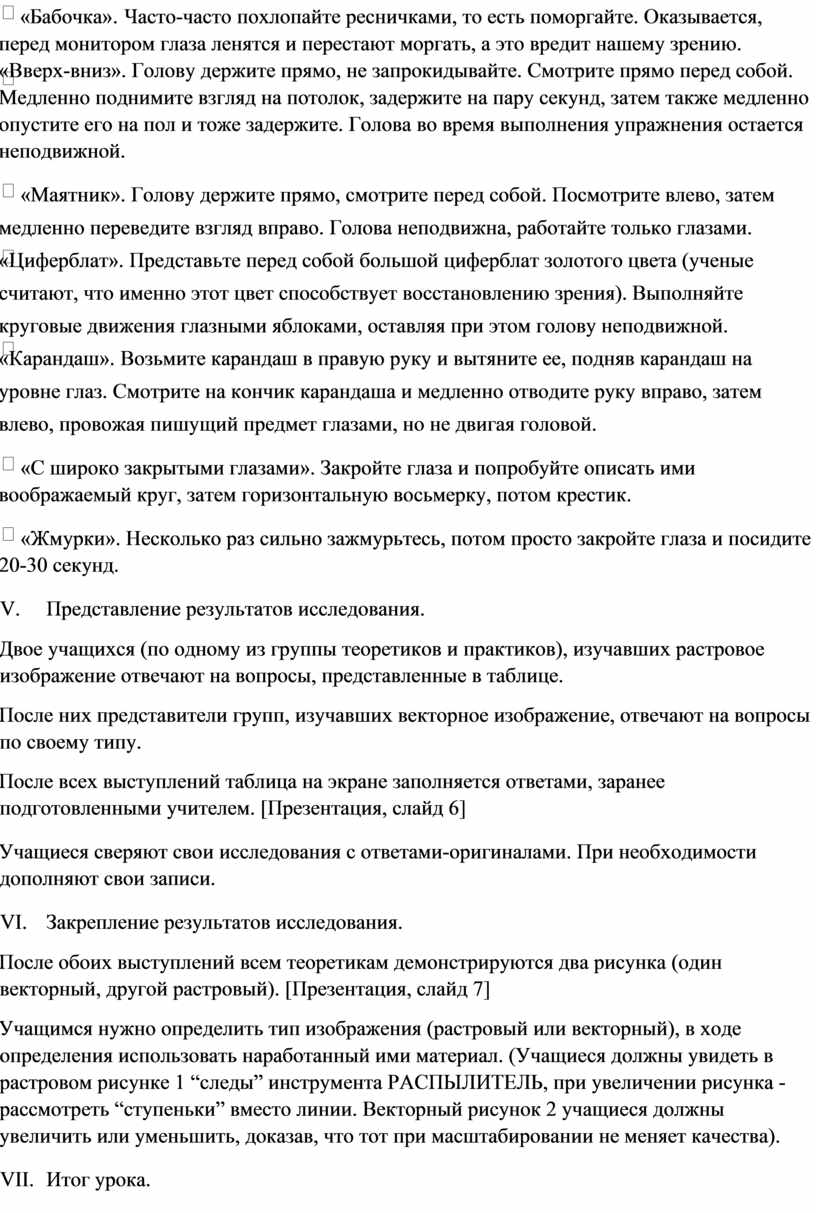 Для исследования вам нужно разделиться на 4 группы: группа теоретиков и группа практиков по изучению растрового изображения, группа теоретиков и группа практиков по изучению векторного изображения. Каждая группа через 20 минут должна доказать нам, что тип формирования компьютерного изображения которое они исследовали лучше другого.