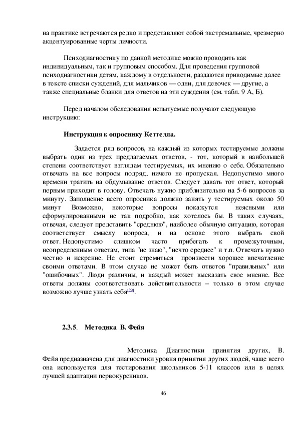 Методика диагностики принятия других, В. Фейя . Методика В.