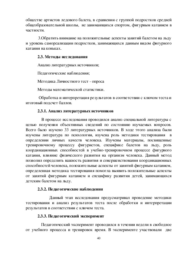 2.3.3. Педагогический эксперимент …………………………………………....39