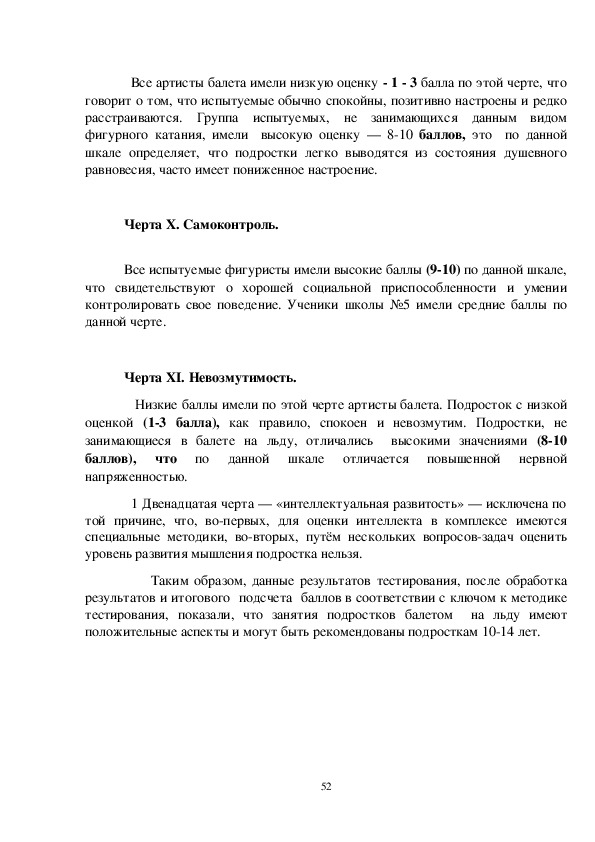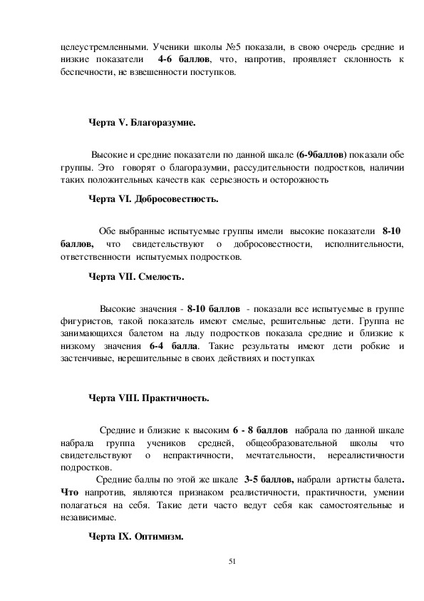 51Все артисты балета имели низкую оценку 1 3 балла по этой черте, что