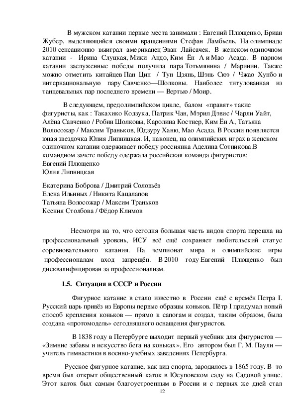 1.3. Расцвет фигурного катания………………………………...........................9