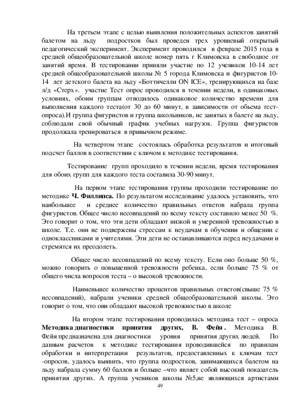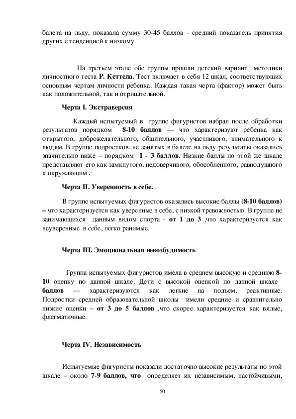 людям. В группе подростков, не занятых в балете на льду результаты оказались