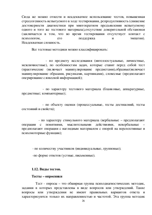 ………………………………………………......25 1.13. Классификация тестов по