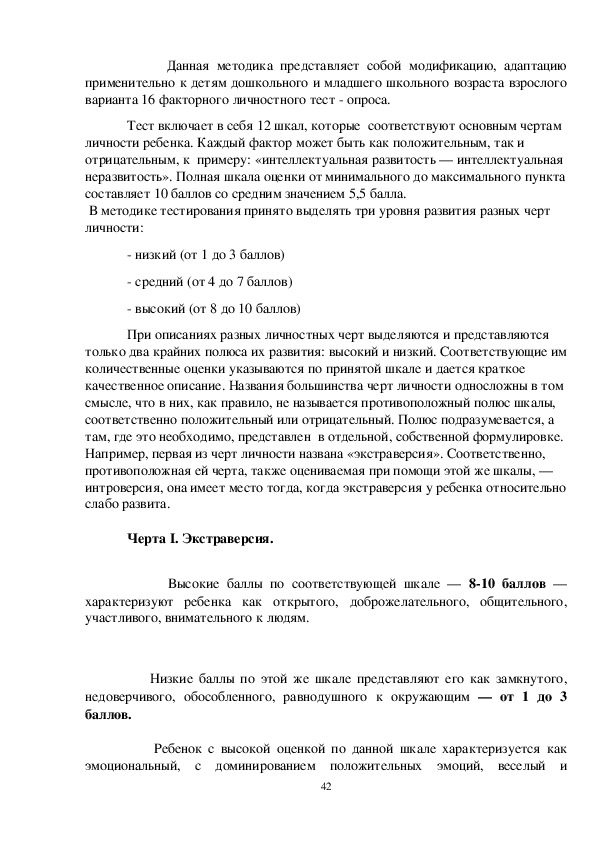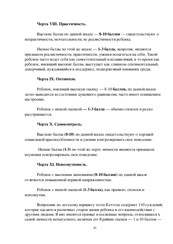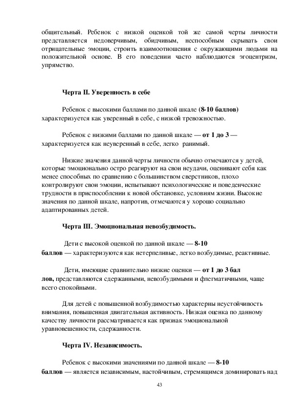 основным чертам личности ребенка. Каждая такая черта (фактор) может быть