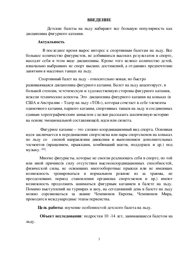 Цель работы: изучение особенностей детского балета на льду.