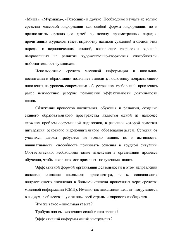 значение внедрению школьной газеты в учебновоспитательный процесс в