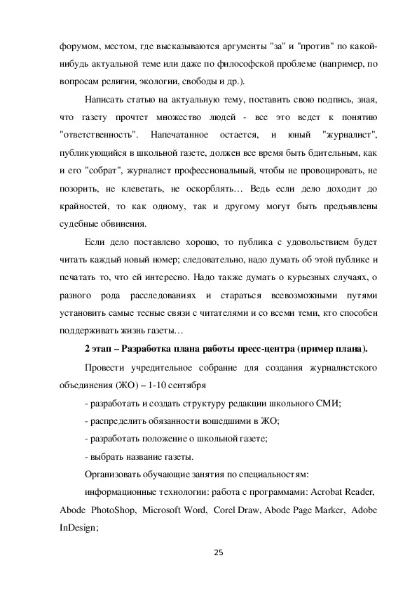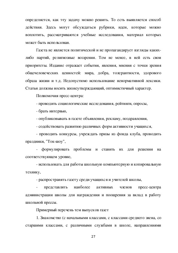 Разработка плана работы прессцентра (пример плана).