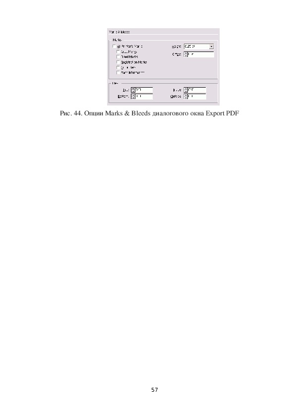 56Рис. 44. Опции Marks & Bleeds диалогового окна Export PDF