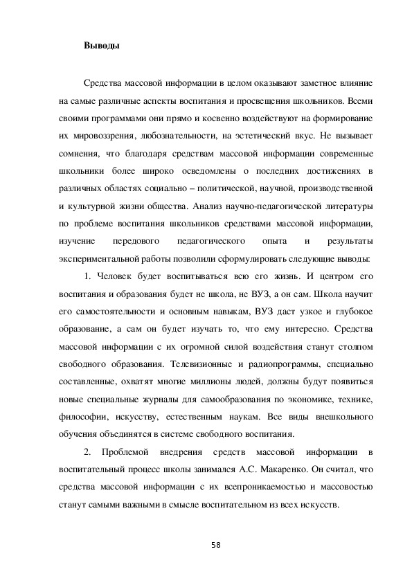 воспитания школьников играют средства массовой информации.