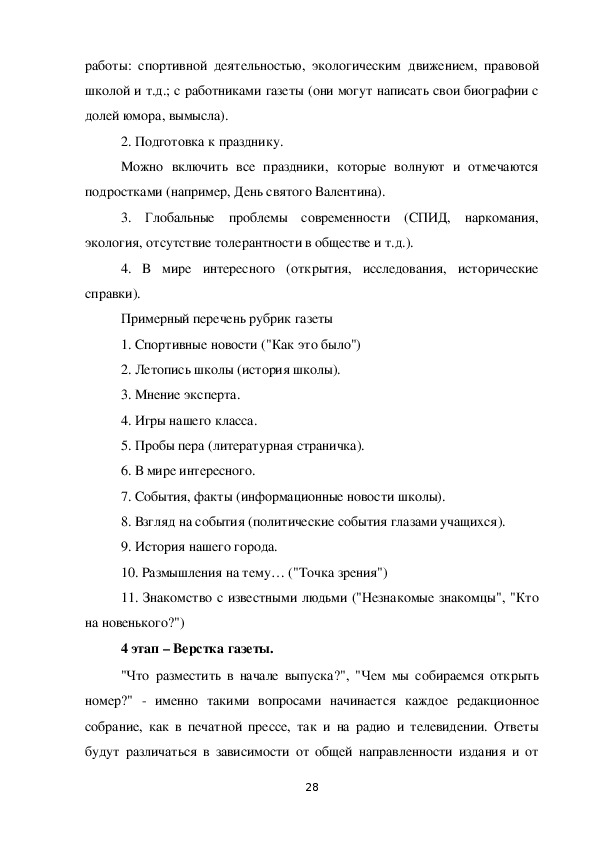 4. Разработать технологию создания школьной газеты.