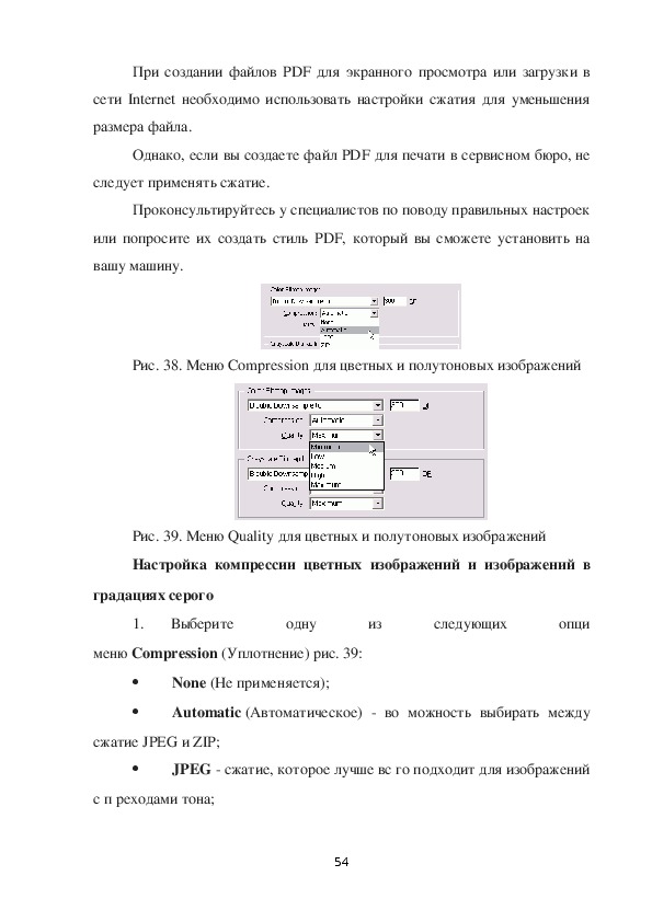 Рис. 38. Меню Compression для цветных и полутоновых изображений