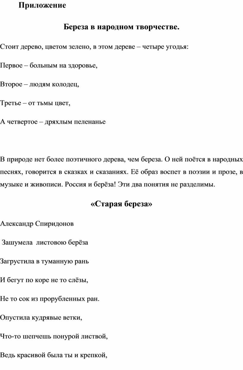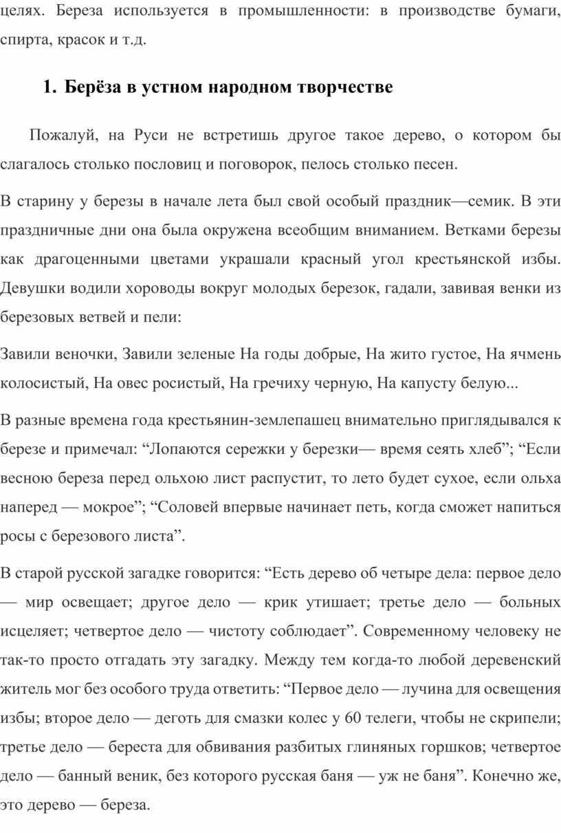 4. Береза в устном народном творчестве…….. ………………………………9