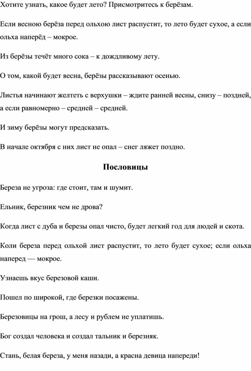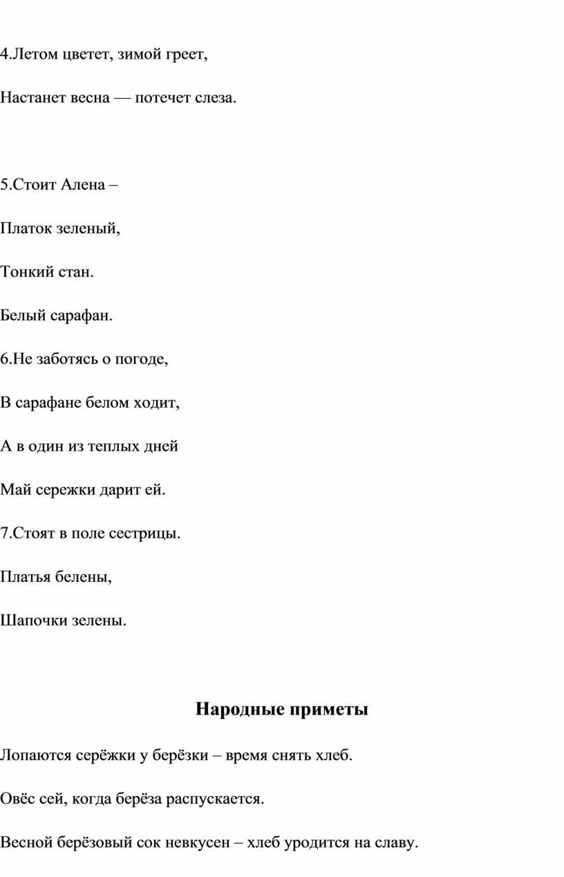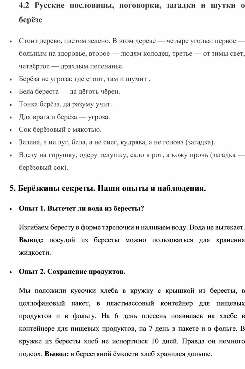 4.2 Русские пословицы, поговорки, загадки и шутки о берёзе