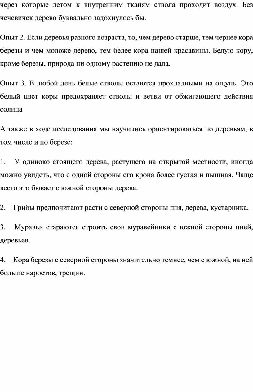 4. Кора березы с северной стороны значительно темнее, чем с южной, на ней больше наростов, трещин.