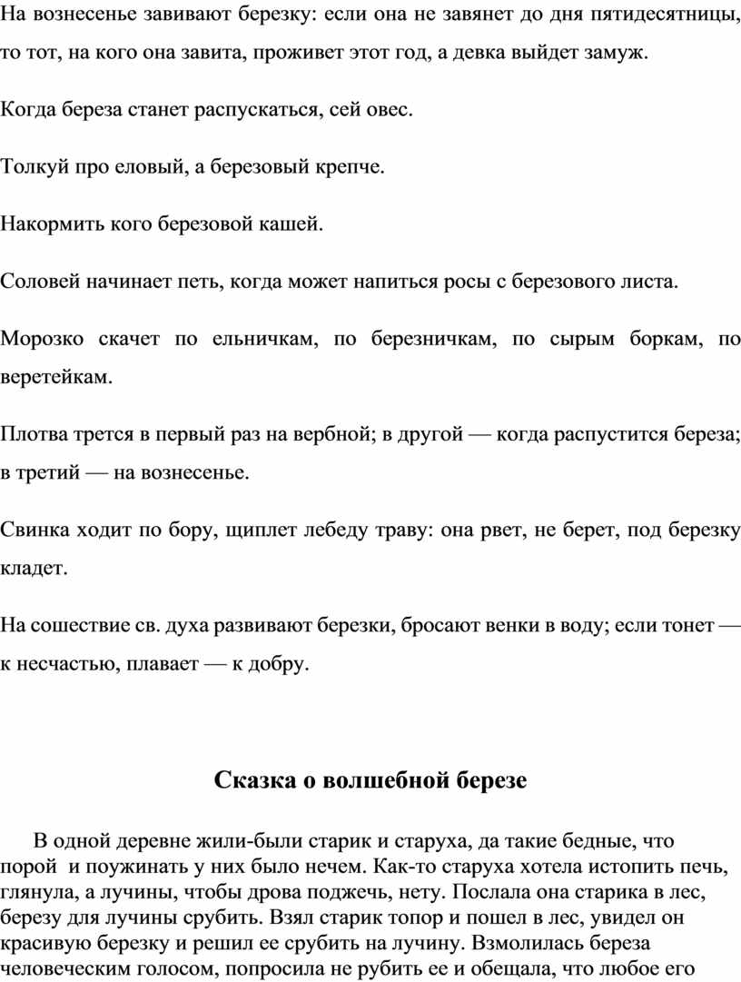 4. Берёза в устном народном творчестве