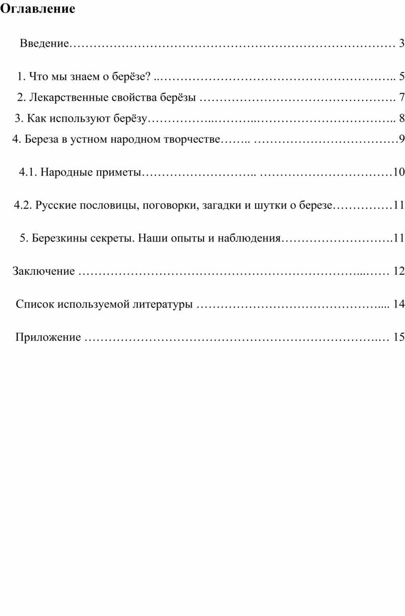 1. Что мы знаем о берёзе? ..………………………………………………….. 5