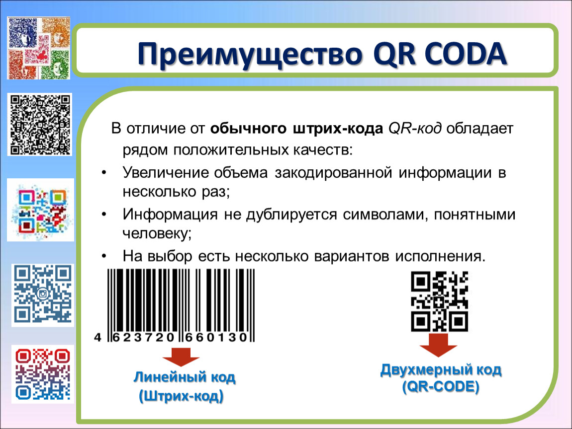 В отличие от обычного штрих-кода QR-код обладает рядом положительных качеств: