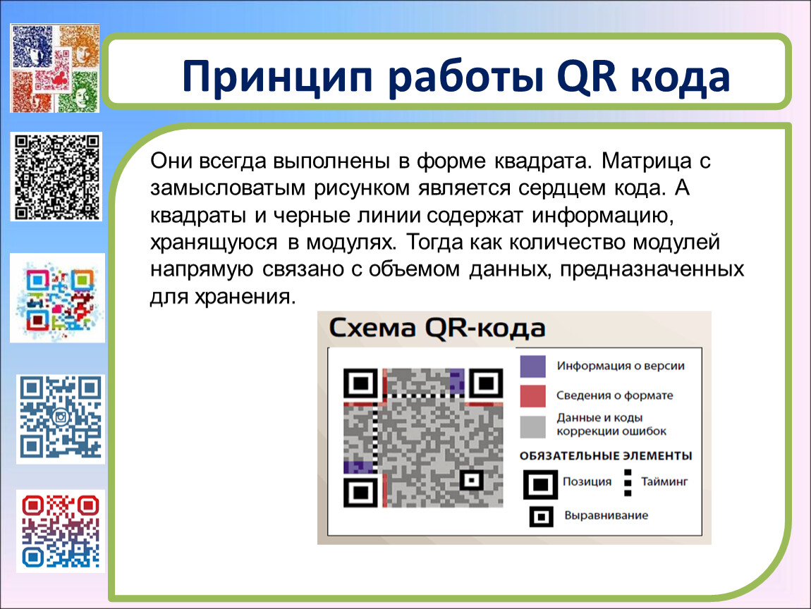 Они всегда выполнены в форме квадрата. Матрица с замысловатым рисунком является сердцем кода. А квадраты и черные линии содержат информацию, хранящуюся в модулях. Тогда как количество модулей напрямую связано с объемом данных, предназначенных для хранения.