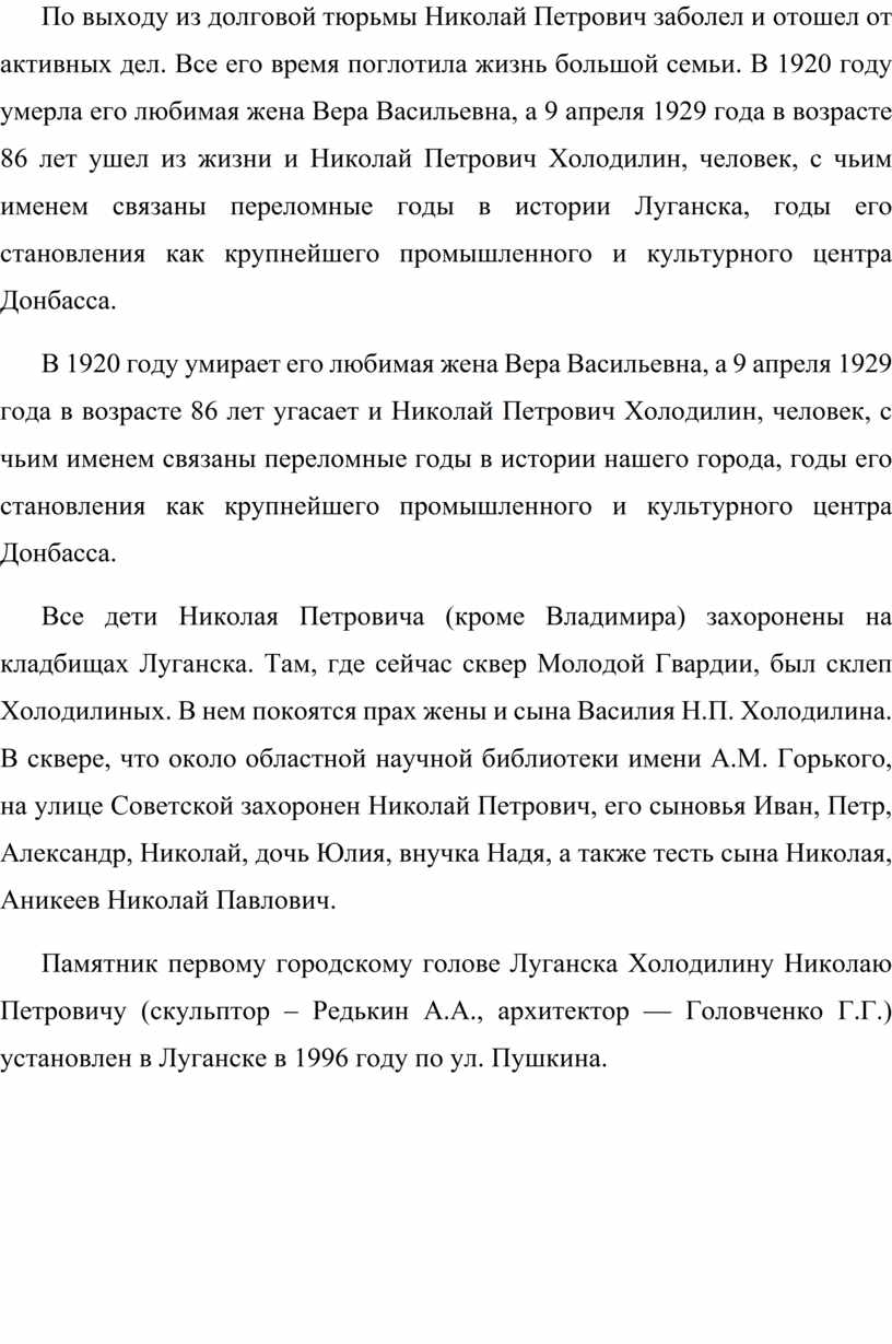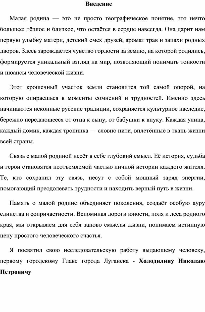 Я посвятил свою исследовательскую работу выдающему человеку, первому городскому Главе города Луганска - Холодилину Николаю Петровичу