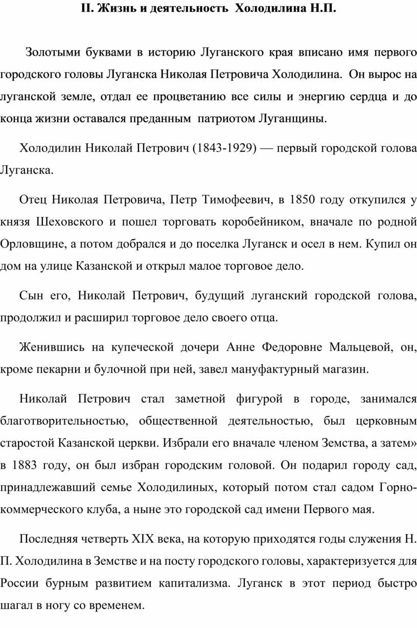 II.Жизнь и деятельность Холодилина Н.П. 7