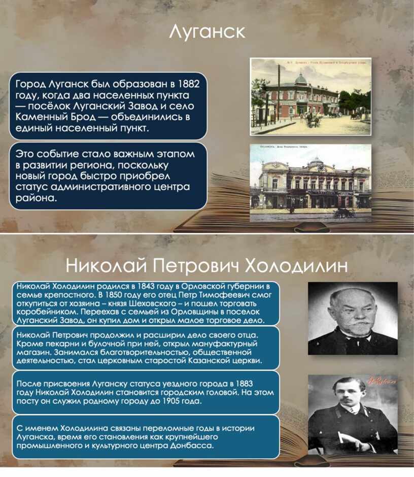 Золотыми буквами в историю Луганского края вписано имя первого городского головы Луганска Николая Петровича Холодилина. Он вырос на луганской земле, отдал ее процветанию все силы и энергию сердца и до конца жизни оставался преданным патриотом Луганщины.