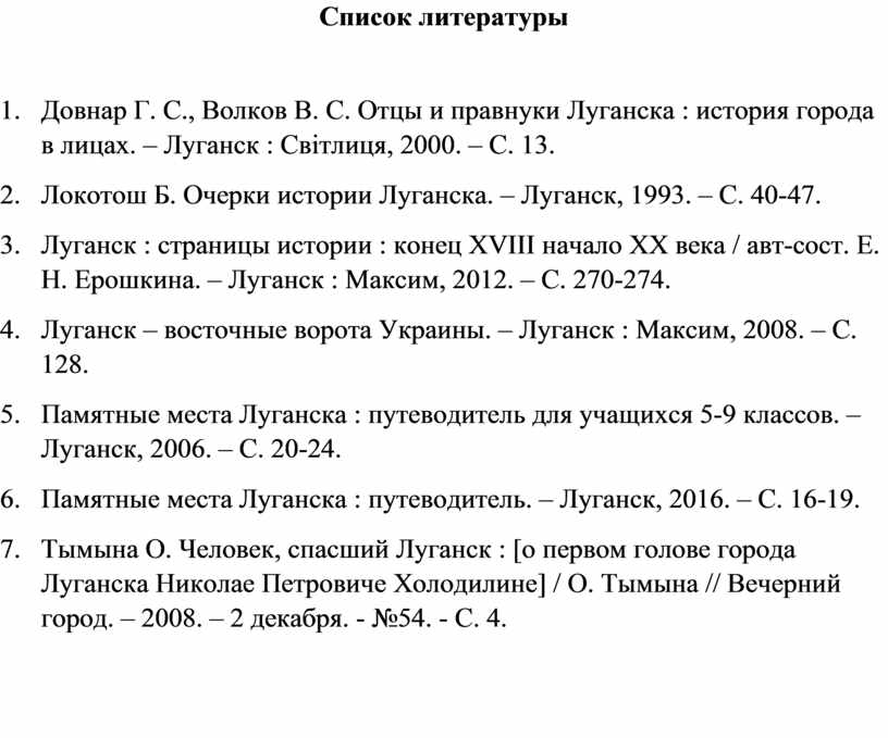 5. Памятные места Луганска : путеводитель для учащихся 5-9 классов. – Луганск, 2006. – С. 20-24.