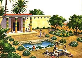 Первые фонтаны возникли в Древнем Египте и Месопотамии, о чем свидетельствуют изображения на древних надгробиях. Изначально они использовались не столько для красоты, сколько для полива выращиваемых культур и декоративных растений. Орошаемые ими сады, расположенные в сухих высокогорных районах, славились своими тенистыми аллеями и сочными плодами. Египтяне сооружали фонтаны во фруктовых садах возле дома, где они устанавливались посреди прямоугольного пруда. В каждом богатом доме внутренний двор обычно украшал выложенный плиткой или камнем бассейн с фонтаном в центре. (приложение 1, фото 1-3).