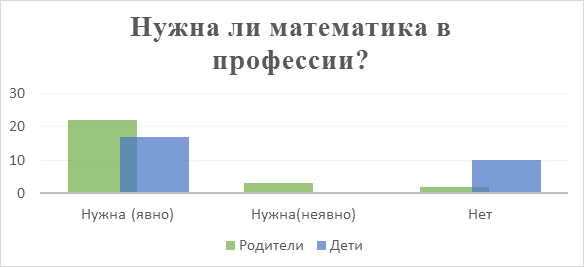 -из опрошенных родителей 81% считает, что математика явно нужна в их профессиональной деятельности, остальные – нужна, но косвенно;